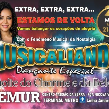 23 May 2026 Cemur — Taboão da Serra CEMUR – Musicaliando Dançante Especial DJs Thurs, Luciano e Evandro More info